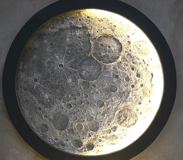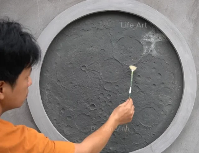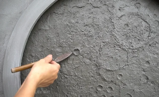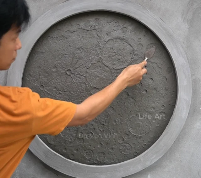Мастер создал оригинальный настенный светильник в форме луны, используя обычный цемент. Трудно поверить, что из такого простого материала и с помощью бытовых инструментов можно изготовить настоящий художественный шедевр.