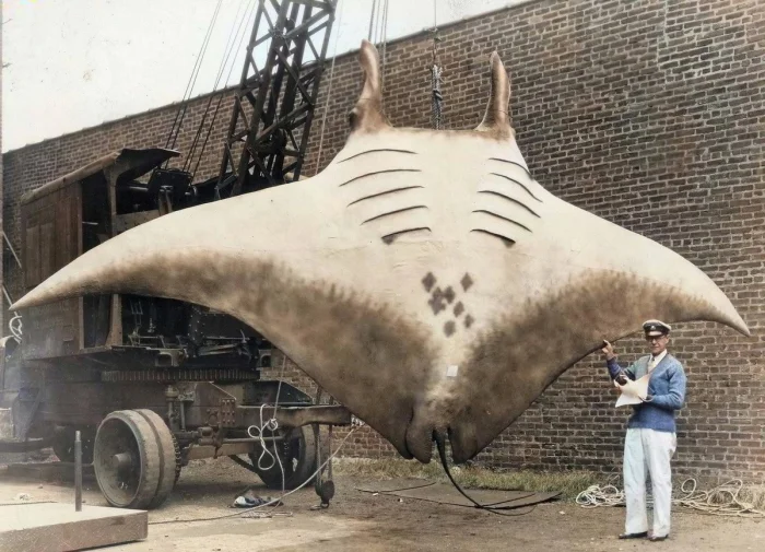 Капитан А.Л. Кан с гигантской мантой, Нью-Джерси, США, 1933 год