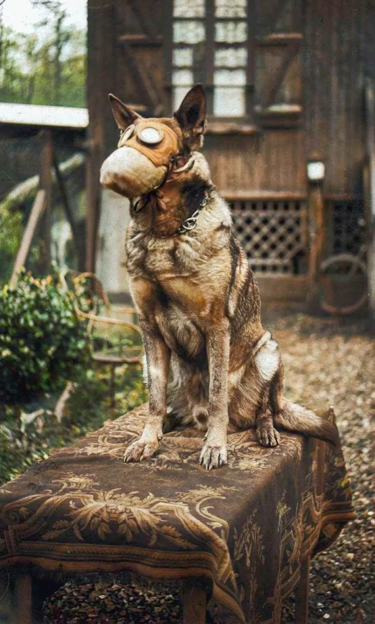 Овчарка одетая в противогаз, французский Красный Крест, 1917 год