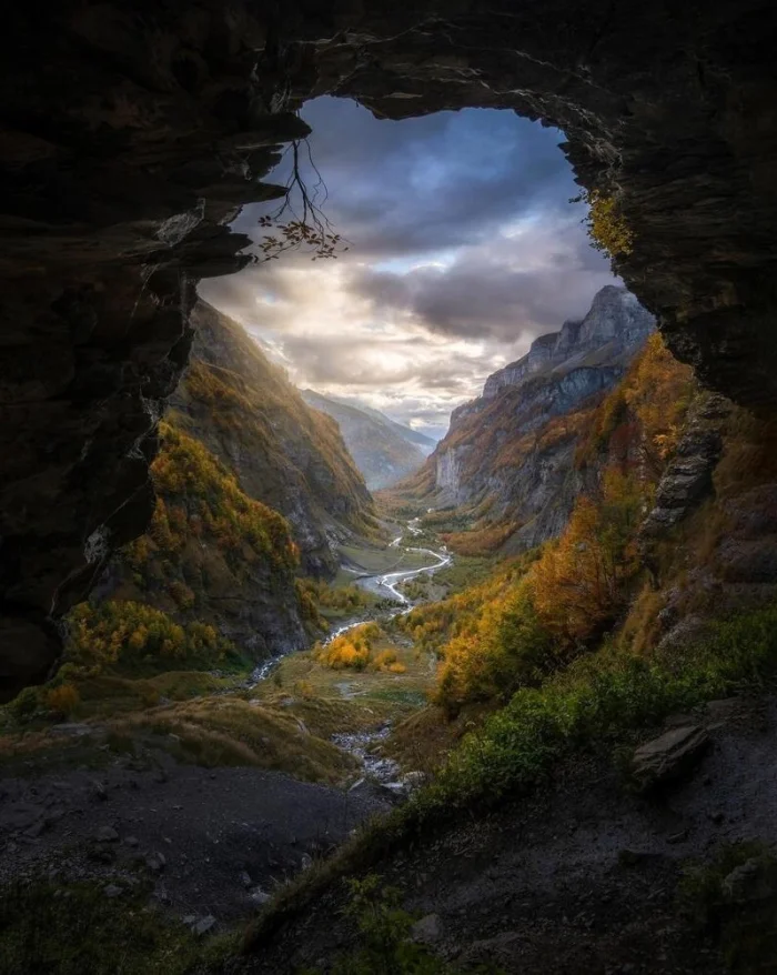 4. Пещера с видом на красивую долину во Французских Альпах