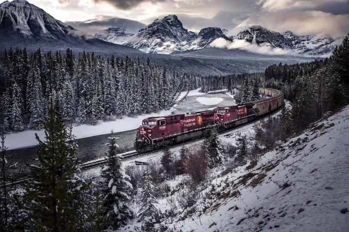 14. «Кривая Моранта» — место в Национальном парке Банф, Альберта, Канада, где через живописный ландшафт проходит грузовой поезд Канадской Тихоокеанской железной дороги