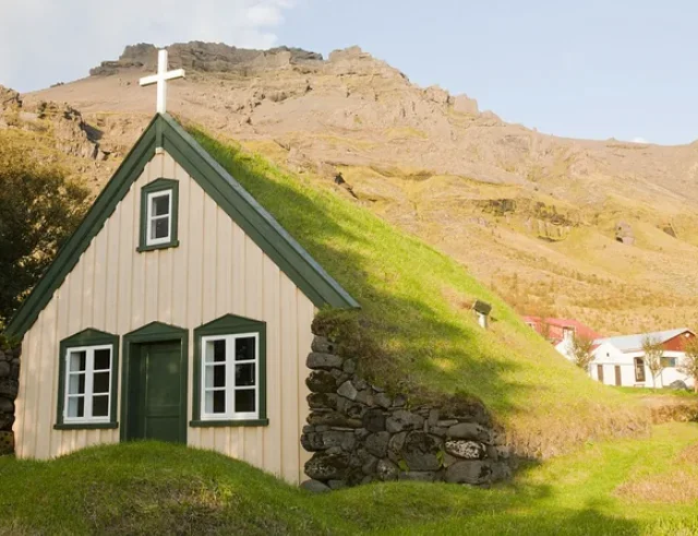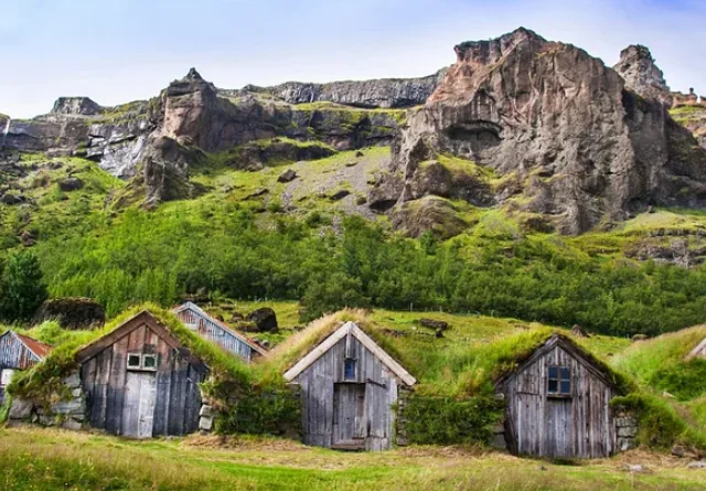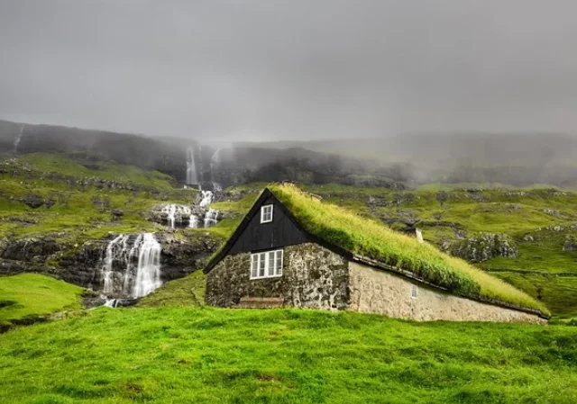 Подлинные строения с зелеными кровлями, напоминающими жилища хоббитов из вселенной Средиземья.