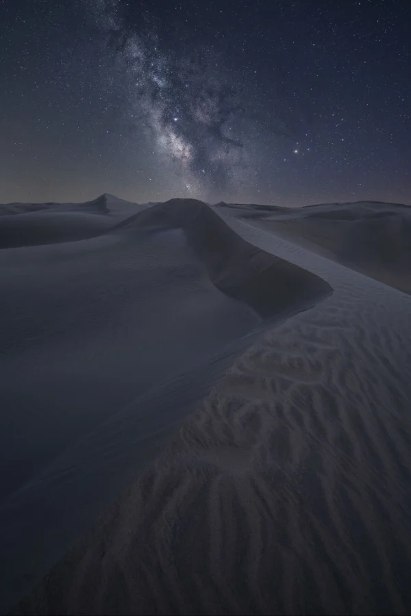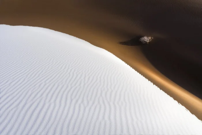 Облако над песками и снегом в пустыне Бадын-Джаран, Китай. Автор Ян Гуан