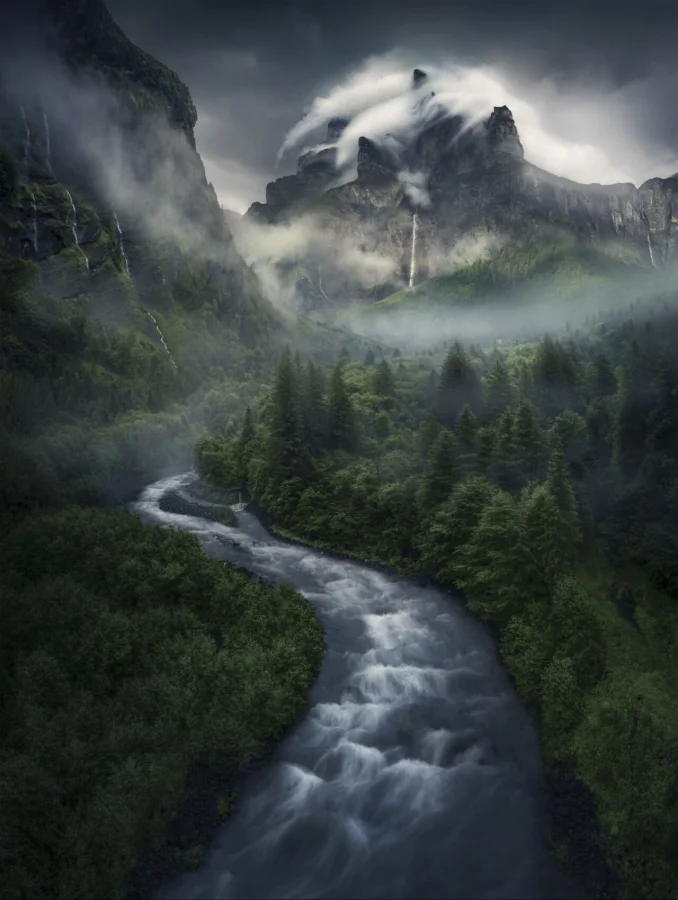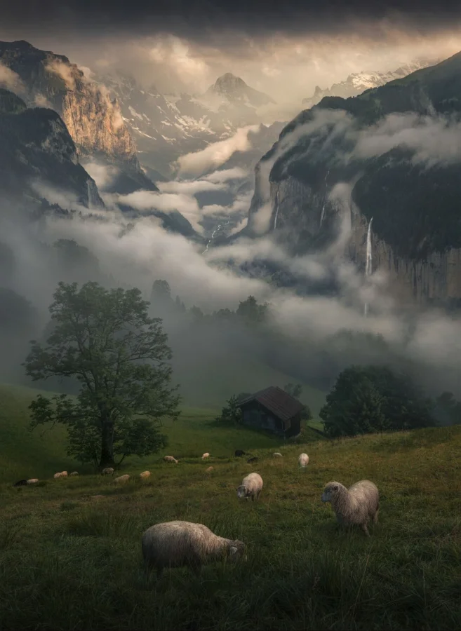 Летний вечер в прекрасном Лаутербруннене, Швейцария. Автор Макс Райв