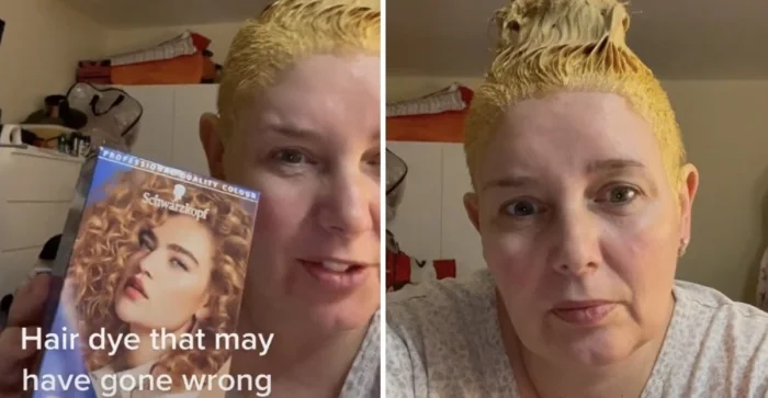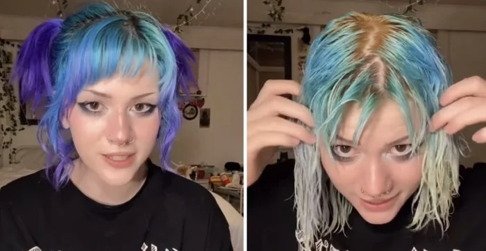Сначала она обесцветила свои волосы, а потом решила выпрямить при помощи специального средства