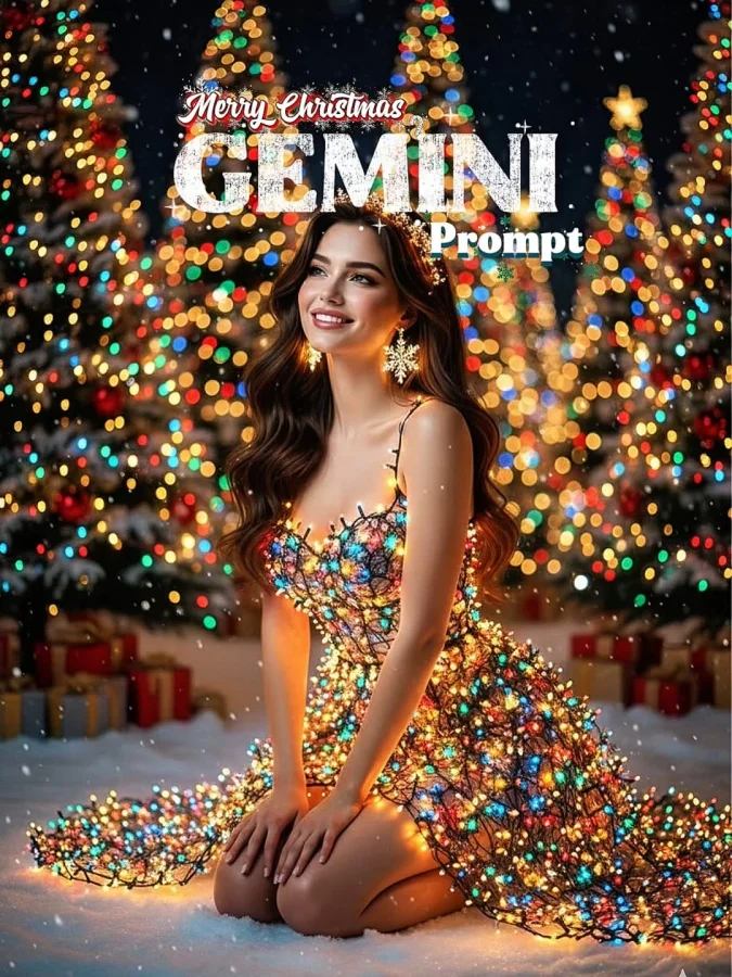 The scene feels warm, magical, and luminous—a Christmas that truly shines.