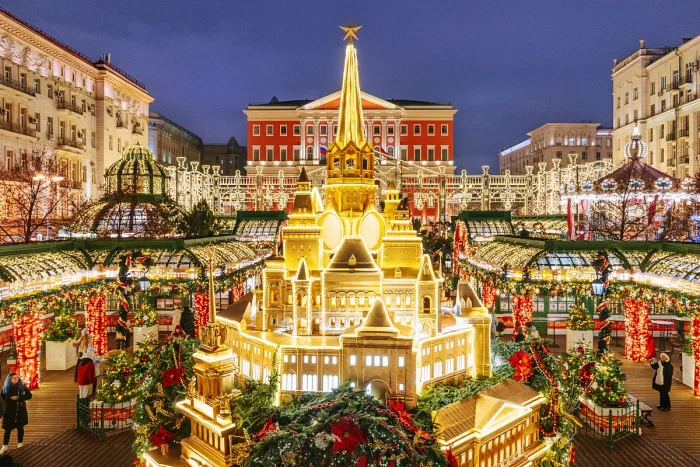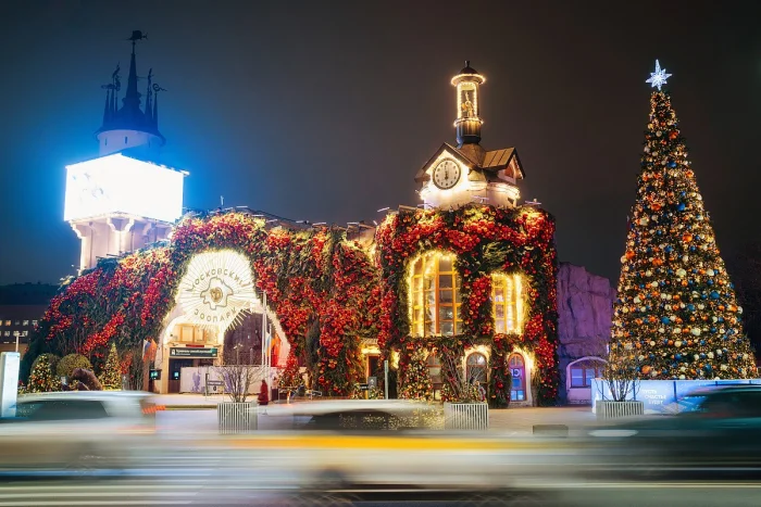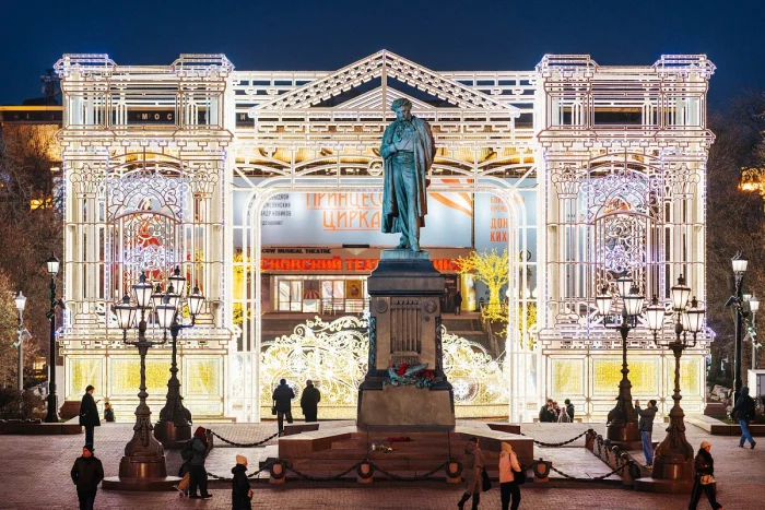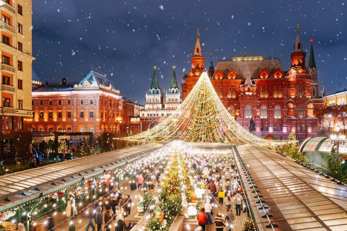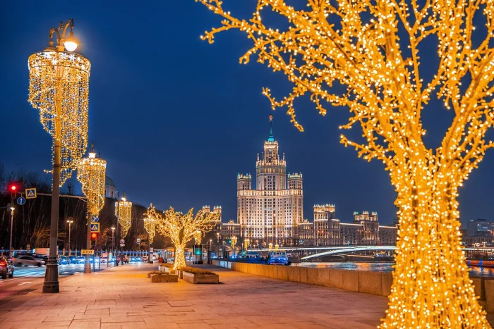 Москва окуталась волшебной атмосферой новогоднего праздника. По всему городу установили яркие декорации: гигантские светящиеся цифры "2026", украшенные ели, разноцветные гирлянды, шары и эффектные арки, создающие неповторимую сказочную атмосферу.