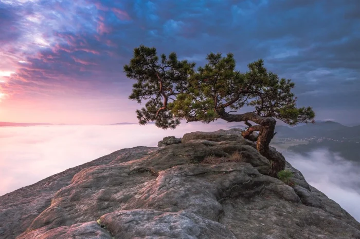Старая сосна на скале, Saxon, Швейцария. Фото-Рико Рихтер