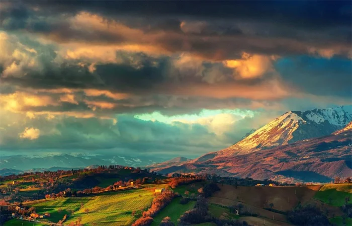 Прекрасный горный ландшафт и драматическое небо, объединились в пейзажной фотографии. Это уже настоящее искусство. Автор фото неизвестен