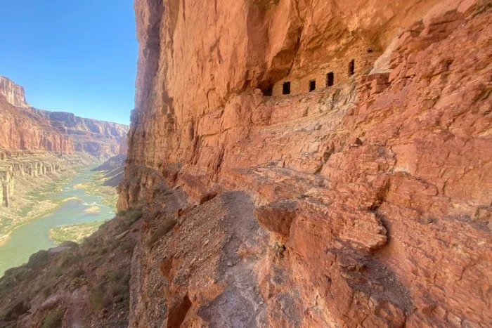 5. 900-летние зернохранилища Нанкоуип, построенные предками пуэбло, расположены на высоте примерно 200 метров над берегом реки Колорадо в Аризоне