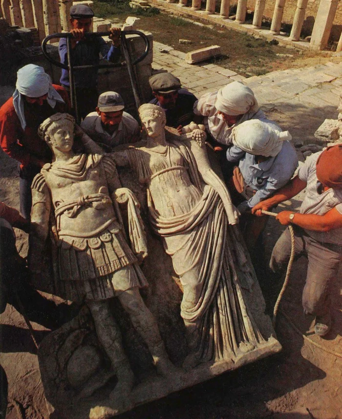 12. Извлечение статуи Нерона, коронуемого его матерью Агриппиной, в Себастионе в Афродизиаде, Турция, 1979 год