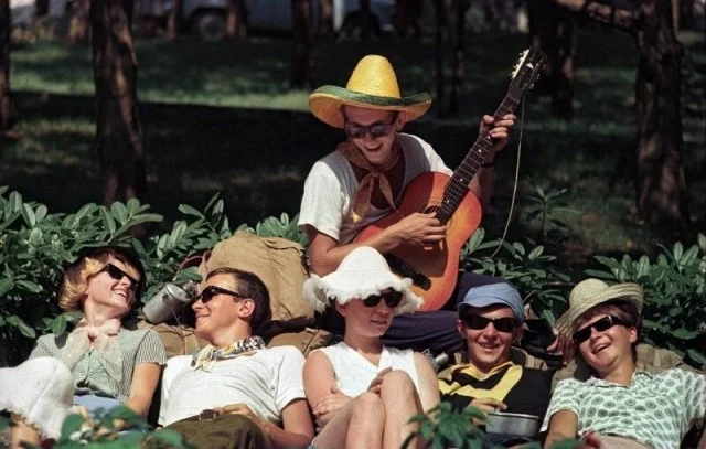 Туристы на привале. 1967 год. Автор: Лев Бородулин.