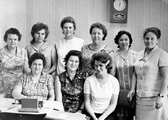 Коллектив бухгалтерии и сотрудников Домодедовского Горпо. Фотография из архива Ольги Григорьевны Жокиной