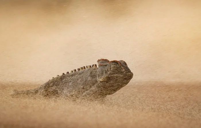 Победитель в категории "Поведение: амфибии и рептилии". Хамелеон Намаква в пустыне Намиб.//Фото: Dewald Tromp/World Nature Photography Awards