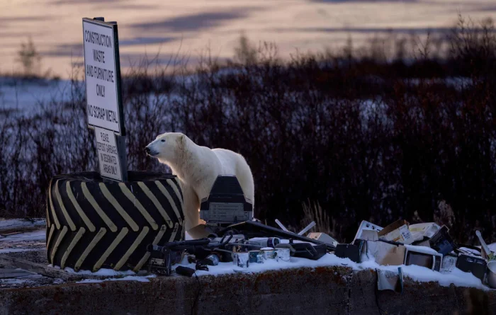 Победитель в категории "Городская дикая природа". Белый медведь среди выброшенной электроники в Черчилле, Канада.//Фото: Robert Gloeckner/World Nature Photography awards