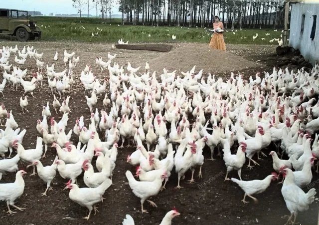 На птицеферме. Казахская ССР, Кустанайская обл., совхоз «Краснодонский», 1959 год.