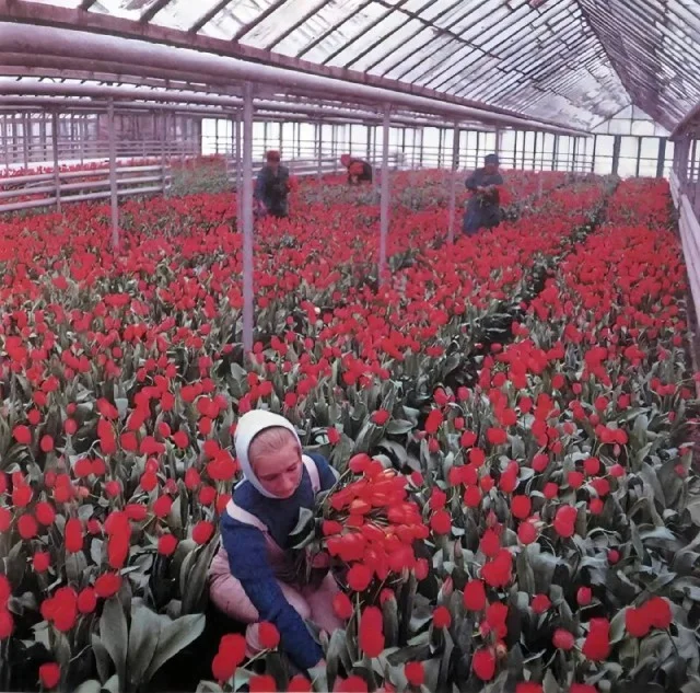 В теплице совхоза "Декоративные культуры" , Город Нальчик, Кабардино-Балкарская АССР, 1980-1985. Фото В. Вороков, К. Айунц.