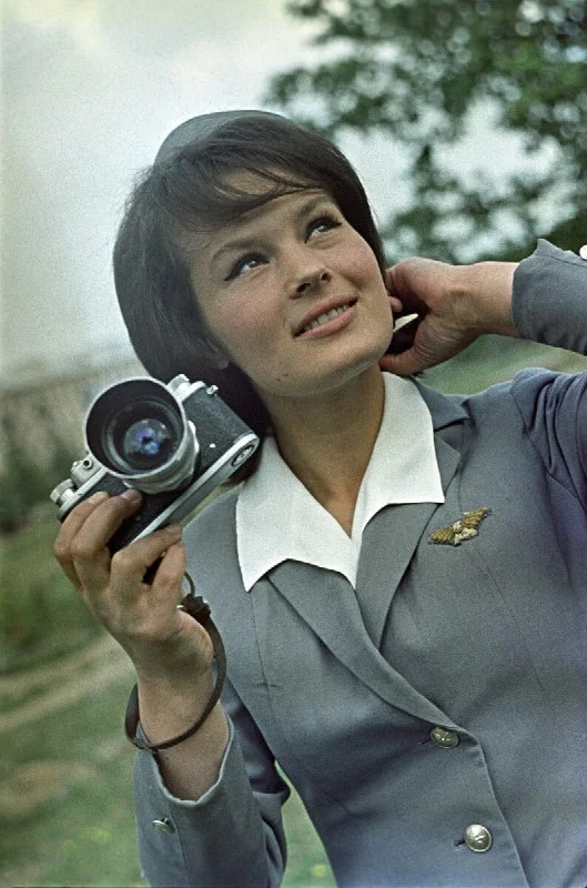 Стюардесса «Аэрофлота» В. Назарова в аэропорту Внуково , Москва, 1966 год. Фото Б. Мещеряков.