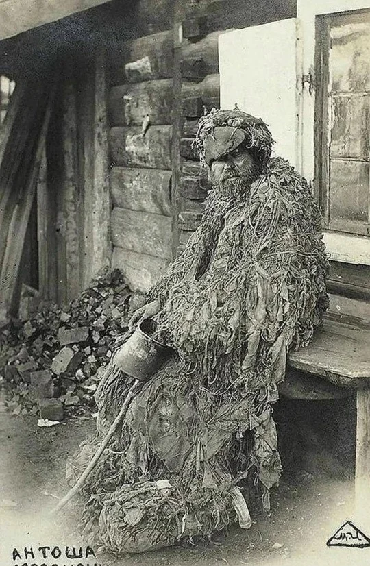 Мы ничего не знаем про Антошу Юродивого со станции Черемхово, Иркутской губернии, фото 1900 года. Российская империя. Но снайперы благодарят его за прообраз маскировочного костюма гилли.