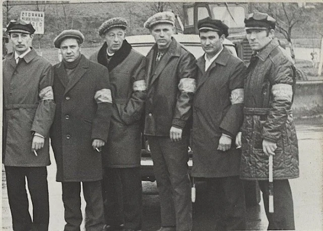 Советские дружинники охраняют спокойствие граждан.