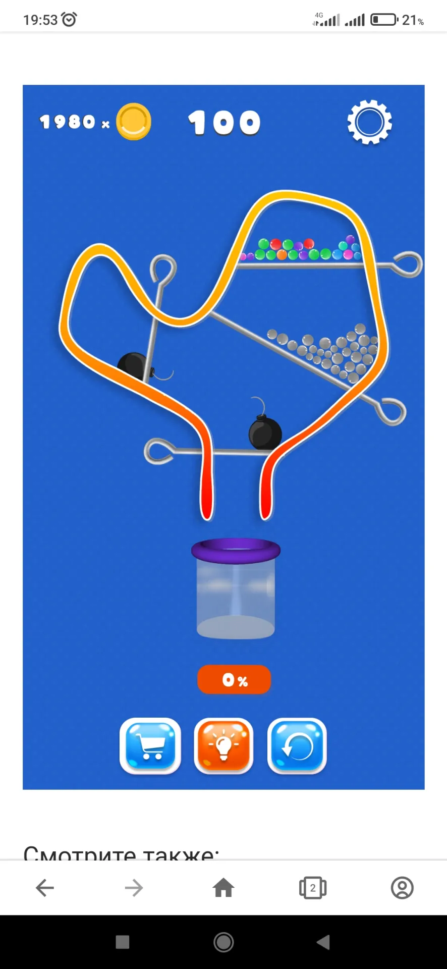 Хитрая головоломка с огромным количеством уровней. Внимательно изучайте уровни и планируйте свои ходы, чтобы вытащить штыри в правильном порядке. Будьте осторожны! Не дайте бомбам коснуться пузырей!