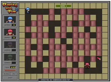 По скрину видно, что за игра, но не спешите делать выводы. Я сам никогда не любил подобный жанр, т.к. он мне казался очень скучным. Однако, эта игра зацепила. Здесь не нужно взорвать все бочки и убежать от монстров. Здесь нужно уничтожить противника, подложив на его пути динимит. А бочки нужно взрывать, чтобы набрать лучшую экипировку, чем у противника и быть быстрее и ловчее его.
