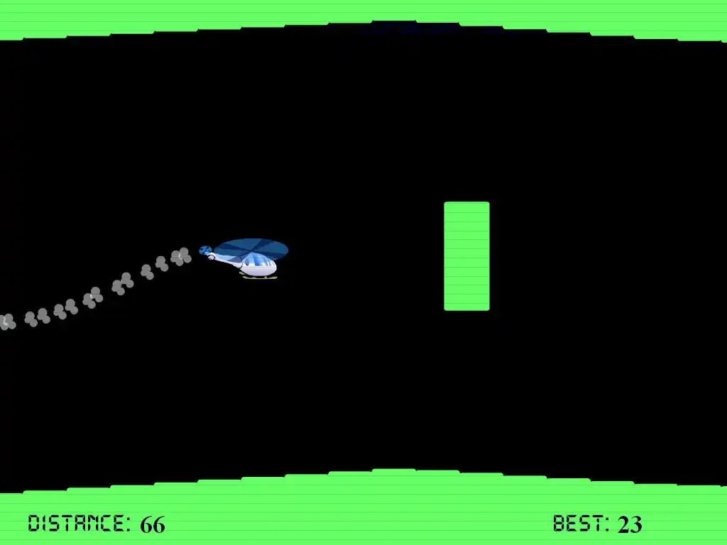 Летит вертолет... точнее он падает. Цель игры — добавить газку и не дать ему упасть. Для этого нужно нажать на вертолет мышкой и удерживать кнопку нажатой. Да... еще на пути Вам встретятся многочисленные препятствия, которые ох как непросто облетать...