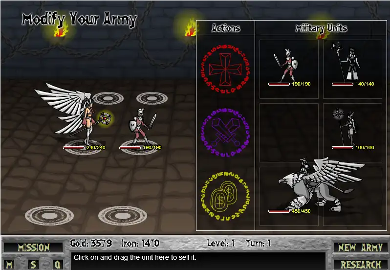 Выбирай героя, нанимай войска, изучай новые умения, выполняй миссии. Пошаговые бои, система улучшений и открытие новых войск.