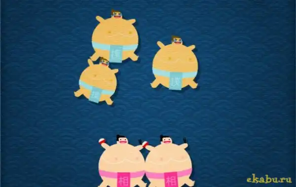 Сумоисты едят и крепнут, крепнут и едят. Накормите своего так, чтобы он выкинул противника с ринга! Принцип игры такой: наводите мышь на своего сумоиста, чтобы он рос, а в момент столкновения с противником убирайте мышку со своего подопечного.