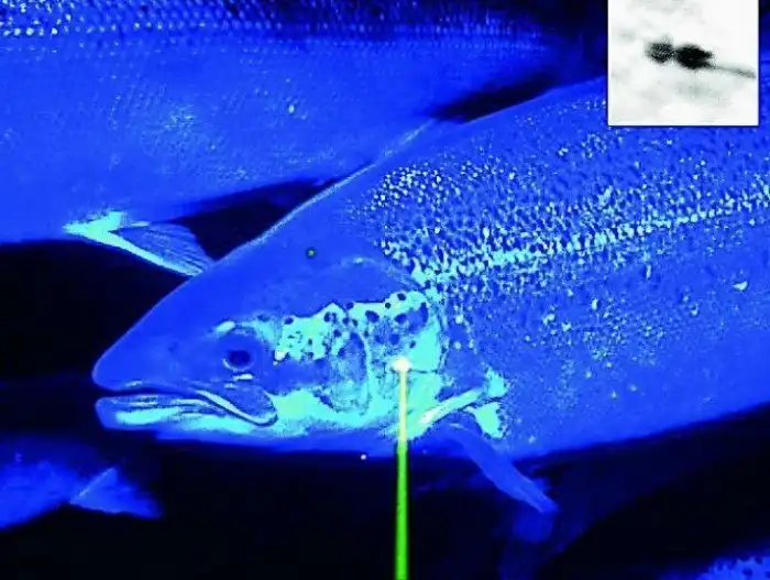 Прибор с помощью буя опускается в воду, распознаёт вшей на рыбах, а далее при помощи лазера начинает запекать паразитов.