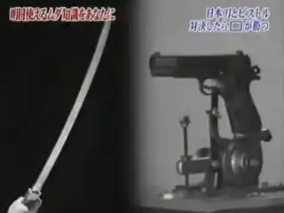 Это доказывает, что катаной можно обороняться от пуль. Вопрос в другом - хватит ли времени для реакции?
