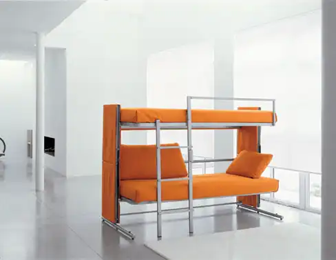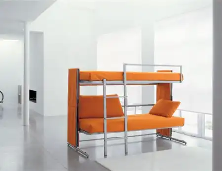Этот на первый взгляд обычный диван на самом деле не так прост. Потому что это самый что ни на есть настоящий диван-трансформер! Он может служить не только диваном, но и превращаться в удобную двухэтажную кровать, при чем даже с лестницей. Особенно хорош такой диван-кровать для небольших квартир или студенческих общежитий, где каждый квадратный метр – на вес золота.