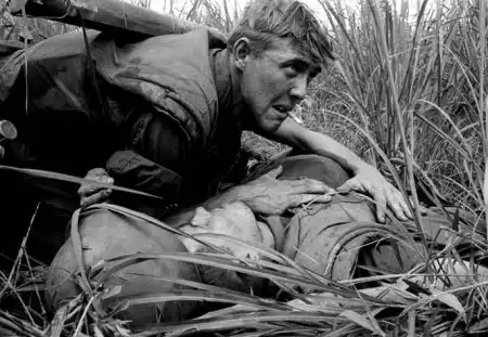Морпех спасает раненого товарища под вражеских огнем. 1967