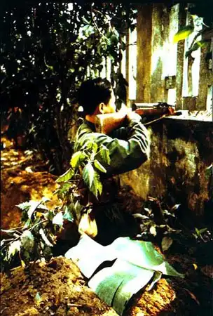 Мать и ее раненый ребенок во время боя в Хюэ. 1968