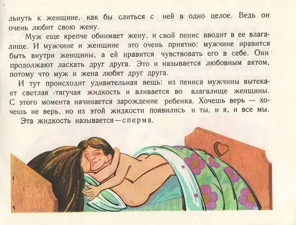 У меня была такая в детстве, мне как раз по-моему лет 8 было. Я прочитала и, занете те ли, нормально восприняла. "Лекцией по анатомии" вовсе ее не считала, и внимание на "первичных половых признаках" не заостряла. Я считала так - раз мои родители это делали и появилась я, значит это хорошо и правильно. И слова о том, что "мама с папой любят друг друга" я тоже не пропустила.