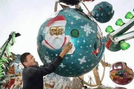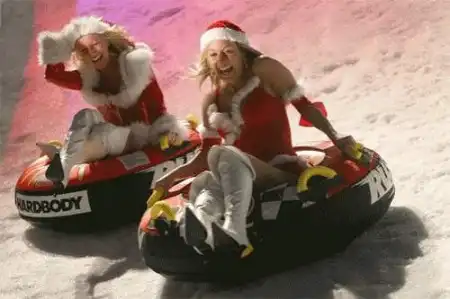 Ну а хорошо выпив и закусив, можно от души повеселиться, попеть рождественских песен, пройтись в хороводе вокруг ёлочки...Или прокатиться с искусственной горы, которая установлена прямо рядом с павильонами аттракционов...