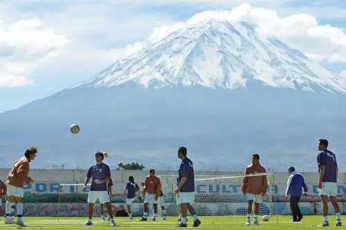 Даже конец света не помешал бы этим парагвайским футболистам, гоняющим мяч на фоне вулкана Мисти в провинции Арекипа, закончить игру.