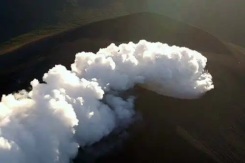 Дым опускается вниз по склону горы этаким сигаретным кольцом, а струя раскаленного пара вырывается из земных недр, устремляясь в поднебесье.