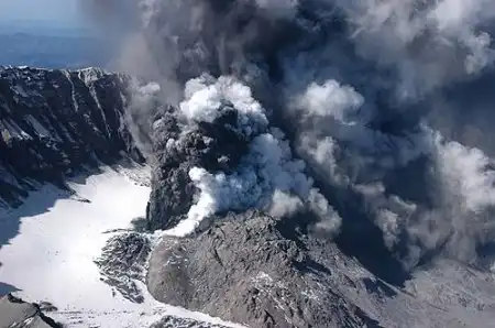 Предпоследнее и самое знаменитое извержение горы св. Елены произошло 22 июля 1980 г. Верхушка горы взлетела на воздух и превратилась в пепел, который ветер разнес по всем соседним штатам. Зрелище, сопоставимое с атомным взрывом.