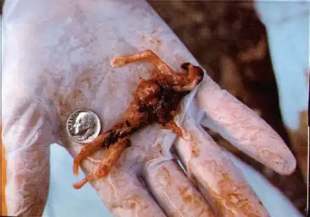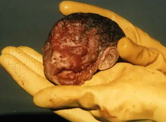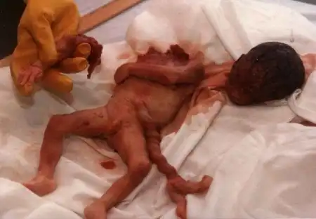 Ребенка расчленяют и удаляют из матки с помощью специального петлеобразного ножа. Если срок беременности превышает 10...11 недель, голову ребенка раздавливают щипцами, иначе ее невозможно удалить. Как и предыдущий, этот аборт совершается вслепую, в результате чего у каждой четвертой женщины травмируется мышечный слой матки, причем поврежденный участок не восстанавливается. Возможно прободение матки (нарушение целости стенки, в результате которого возникает сообщение полости органа с окружающими полостями и тканями, вызывает развитие быстро прогрессирующего гнойно-воспалительного процесса).