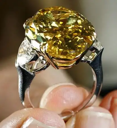И кольцо с ярко желтым бриллиантом в 20,02 карата. Стартовая цена от 1 до 1,5 миллионов долларов.