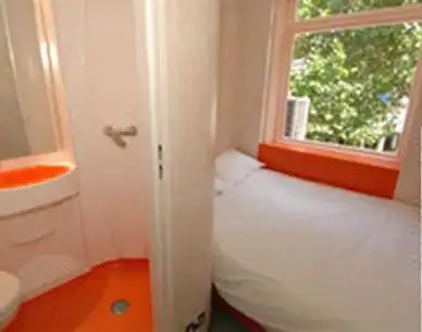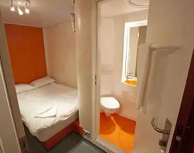 В первом отеле сети easyHotel в западном Лондоне размещено 34 двойных номеров. Комнаты, в которых повсюду виднеется логотип easyHotel.com и никуда не деться от оранжевого цвета, предлагаются трех размеров - маленькие, очень маленькие и крохотные.