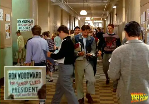 В сцене, в которой Марти посещает Джорджа в школе, на заднем плане висит плакат «Рона Вудворда – в президенты класса!» Рональд Вудворд – «Key Grip», то есть, главный рабочий-постановщик фильма.
