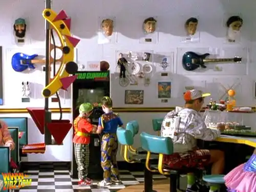 В «Кафе 80-х» официанты – электронные варианты Майкла Джексона, Рональда Рэйгана и Аятоллы Хомейни. Это – пародия на сериал 80-х годов «Max Headroom». Там тоже был компьютерный персонаж, и он так же заикался.