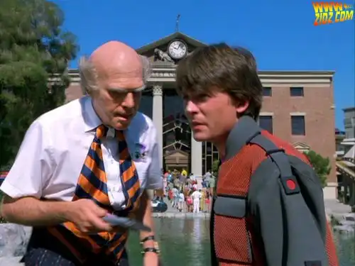 Док Браун всегда носит несколько наручных часов. Это особенно хорошо видно, когда он объясняет Марти, как работает машина времени. Эта привычка у него остается надолго, как показывает это фото из второй части.