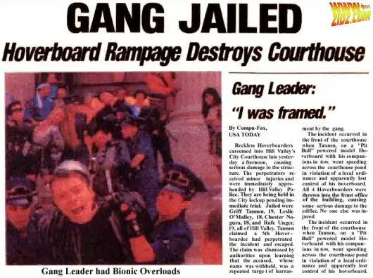 Второй вариант газеты «USA Today», где показана арестованная банда Гриффа, открывает их настоящие имена. Под кличками "Data", "Spike" и "Whitey" скрываются Рэйф Ангер, Лесли О’Малли и Честер Ногура. Другие статьи в этой газете: «Вашингтон готовится к визиту королевы Дианы» и «Новый налет пальцевой банды». Так как оплата в 2015 году производится с помощью отпечатка пальца, естественно, появляются преступные банды, охотящиеся за пальцами обывателей!
