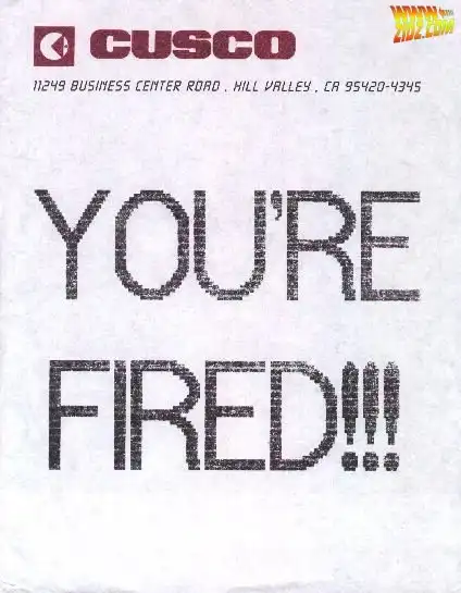 На факсе, уведомляющем Марти об увольнении, написан адрес предприятия: «11249 Business Center Road, Hill Valley, CA 95420-4345». На самом деле этот почтовый индекс принадлежит городку Каспар. Он находится в пятистах милях к северу от Лос-Анджелеса на тихоокеанском побережье.