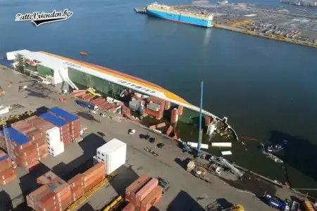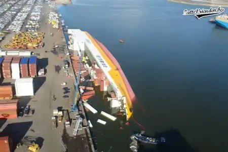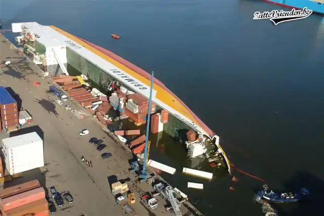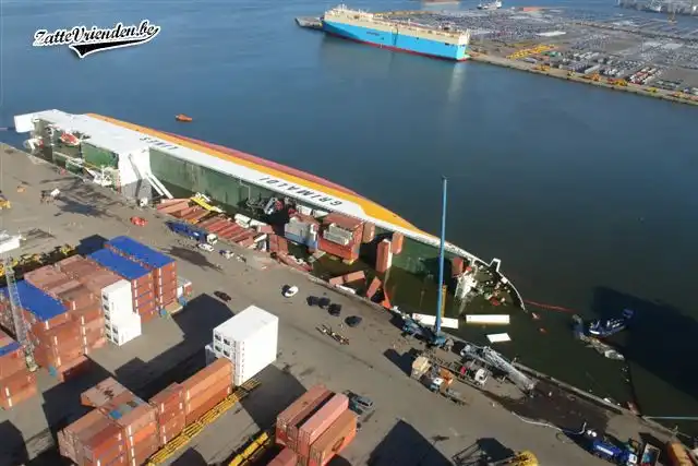 В порту Антверпена перевернулось 216-метровое судно (42 фото)