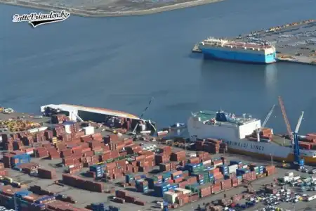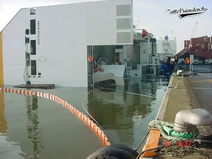 В четверг, 8 марта, в порту Антверпена в ходе загрузки перевернулось судно Republica di Genova лондонской компании Grimaldi Lines, пострадавших нет.