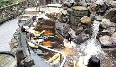 Бассейн с зеленым чаем. Надо полагать, посетители на снимке его пробуют.